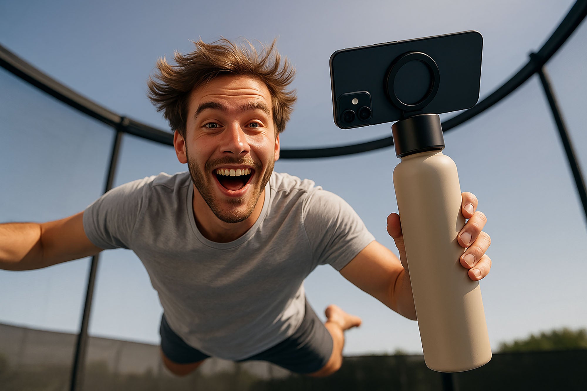Denne unikke termo vandflaske vil ændre den måde du bruger din mobiltelefon på. Nu kan du få bedre vinkler når du skal tage billeder eller filmer, når du læser opskriften mens du laver maden, bruger mobilen som navigation i bilen, etc.